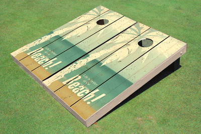 Life is better at the beach! It sure is and especially on a sunny day with family and friends. Enjoy this Beach Life #1 Custom Cornhole Boards Bag Toss Set. The Beach Life Cornhold Board set is custom made and is designed in soft green colors featuring a tropical palm tree. Each custom cornhole board set is ACA Regulation Sized (48 inches long by 24 inches wide with a 6 inch diameter hole) and comes complete with 2 sets of 4 matching duck cloth bags. Made in the USA of high quality materials and craftsmanship. No assembly required, ready to play. Order today for your next beach party or family gathering.