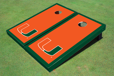 Go Ibises! Make Sebastian the Ibis proud with our University Of Miami Hunter Matching Border Cornhole Boards! These boards are ACA Regulation sized (48' x 24' with a 6-inch diameter hole). All custom cornhole boards are custom made in the U.S. with expert craftsmanship and attention to detail, and are tons of fun for any party, picnic, or tailgating event! Each cornhole board comes with matching duck cloth bags that are handmade in our shop. Each bag weighs between 15-16 oz. No assembly required! Buy yours today and be the proud owner of the most unique cornhole set in the neighborhood!