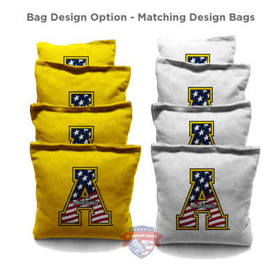 Test your skills while showing off your Apps State Pride with this Appalachian State University EST "A" Black Solid Cornhole Boards Set. Ready to play, no assembly required. Comes complete with 2 sets of 4 duck cloth colored bags and 2 custom cornhole boards that are ACA regulation sized (48 inches long by 24 inches wide with a 6 inch diameter hole). Made In the USA of the highest quality materials and craftsmanship. Order a set today and see if you've got the skills to win the game.
