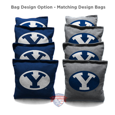 Make your Brigham Young University BYU Custom Cornhole Boards Set complete with custom logo Cornhole Bags. Each bag weighs 15-16 ounces and comes with a custom Brigham Young University BYU logo on it. Set contains 8 bags: 2 sets of 4 alternating colors. Handcrafted in the USA from the finest materials. Add to your order.