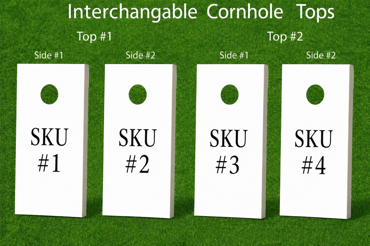 Check out the video below to fully understand this easy to use... new and exclusive Cornhole Board product! Essentially... it's a cornhole "top" or some would call it a "cover"... that sits on top of (locked in and steady) a cornhole board... to show off a new graphical design without having to buy another cornhole board (assuming you already have a cornhole board or buying one)!
