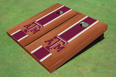 Aggie Fans will unite and challenge each other before the big game with this Texas A&M Cornhole Board Set. Texas A&M Maroon Rosewood Matching Long Strip Cornhole Boards that are ACA Regulation Sized (48 inches long by 24 inches wide with a 6 inch diameter hole)and 8 matching duck cloth bags (2 sets of 4). The set is fully assembled so it's ready to play. Made in the USA of the highest quality materials and craftsmanship. Order your Texas A&M Set today. If you do not see a design you like please contact us and we will design it for you! GO AGGIES!!