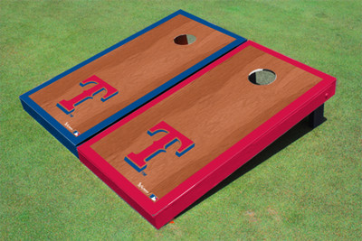 Texas Rangers T Royal Blue Rosewood Matching Border Cornhole Boards