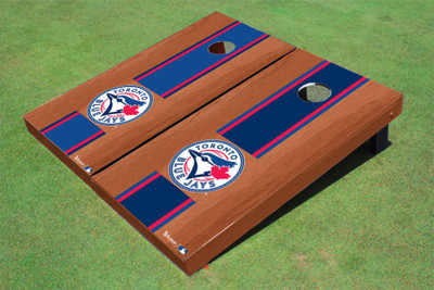 Toronto Blue Jays Circle Rosewood Alternating Long Stripe Cornhole Boards