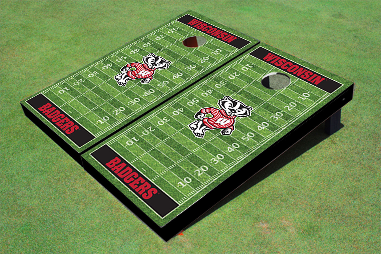 University of Wisconsin "Bucky" Black Matching Football Field Custom Cornhole Boards
