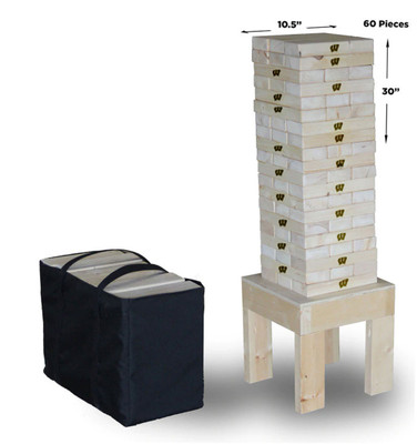 Badgers fans will unite and challenge each other before the big game with this University of Wisconsin Engraved Tumbler Tower - 60 Pieces,It comes with 60 Pieces. The set is fully assembled so it's ready to play. Made in the USA of the highest quality materials and craftsmanship. Order your University of Wisconsin Engraved Tumbler Tower today. If you do not see a design you like please contact us and we will design it for you!